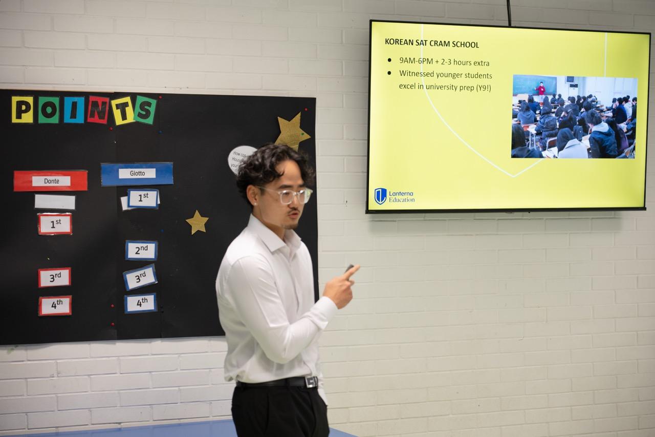 Douglas, un diplomato IB della Classe 2025 che ha ottenuto un risultato di 40/45 nei suoi “IB Studies”, è tornato nel nostro campus come portavoce di Lanterna Education, leader nel fornire supporto agli studenti IB.